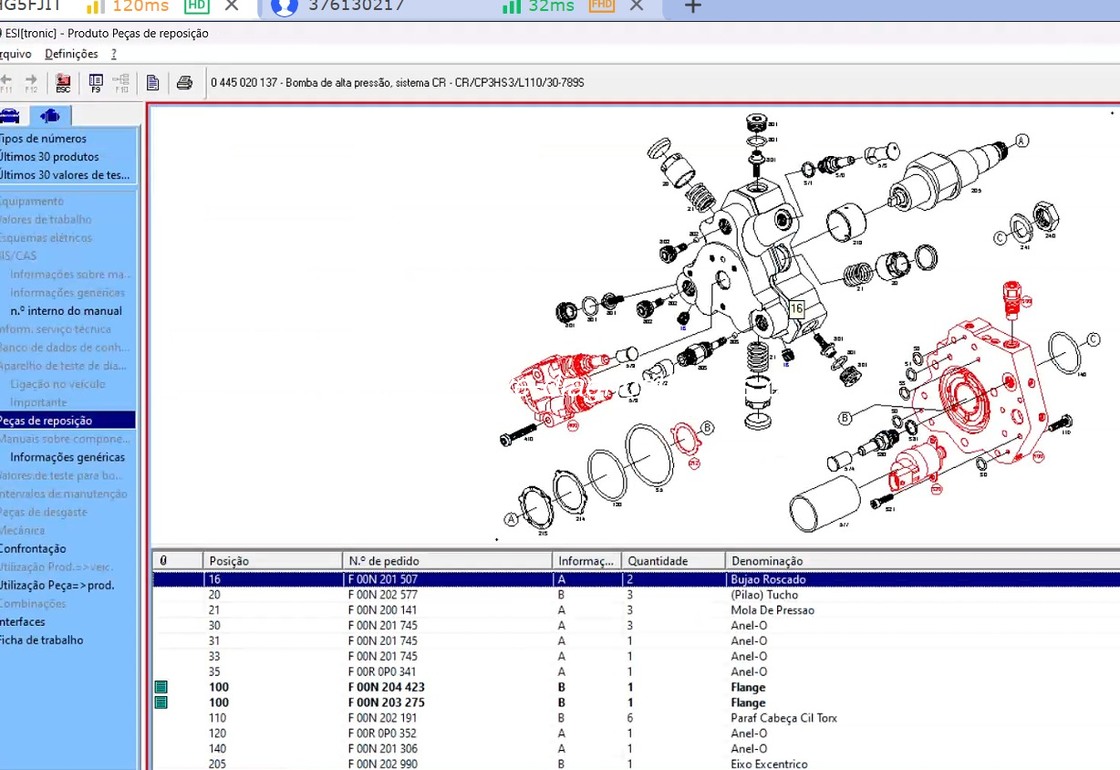 Com 34 000 listas de peças sobressalentes e mais de 380 000 peças, o ESI[tronic]-D é o mais extenso catálogo de produtos a diesel da Bosch.A identificação das peças sobressalentes só é muitas vezes possível com vistas explodidasEstes são acessíveis aqui em uma forma clara com a atribuição de subconjunto, lista completa de peças sobressalentes e número de ordem com um clique do mouse.